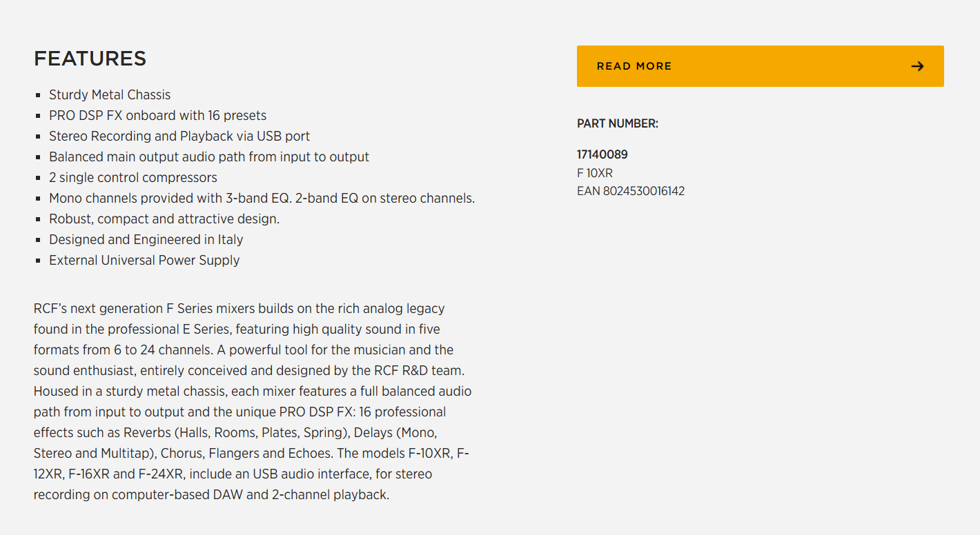 RCF F 10XR 10 Channel Mixing Console with Multi-FX