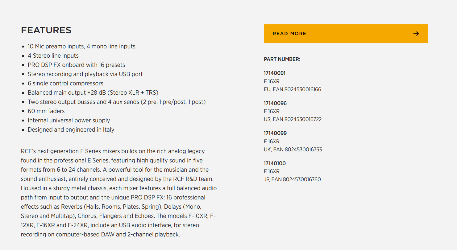 RCF F 16XR 16 Channel Mixing Console with Multi-FX
