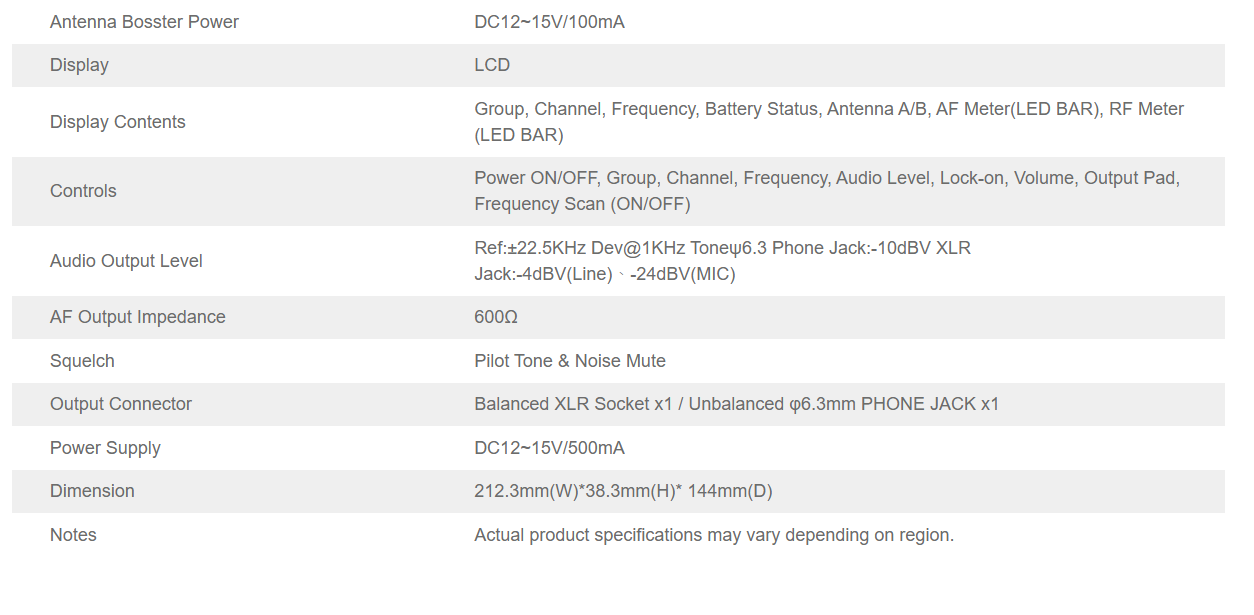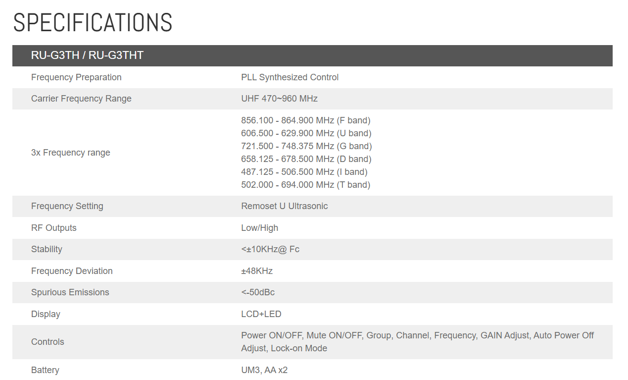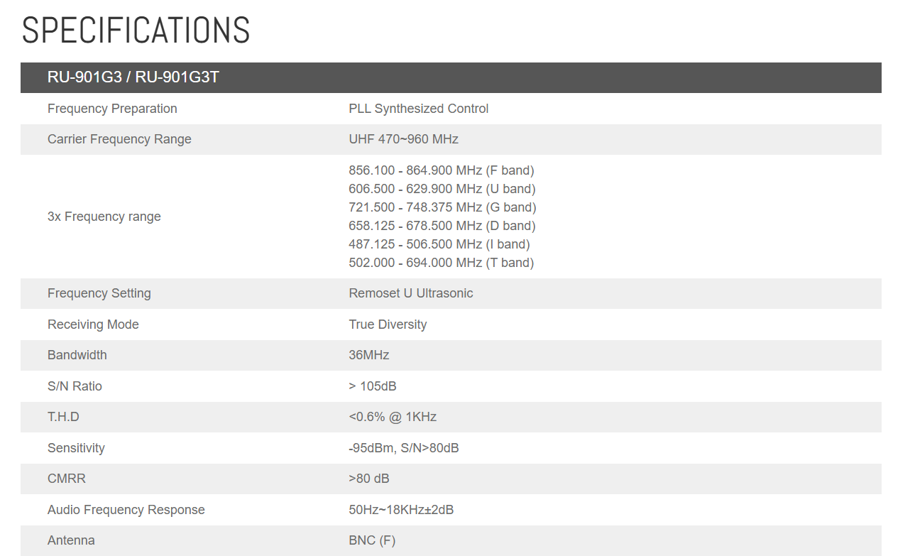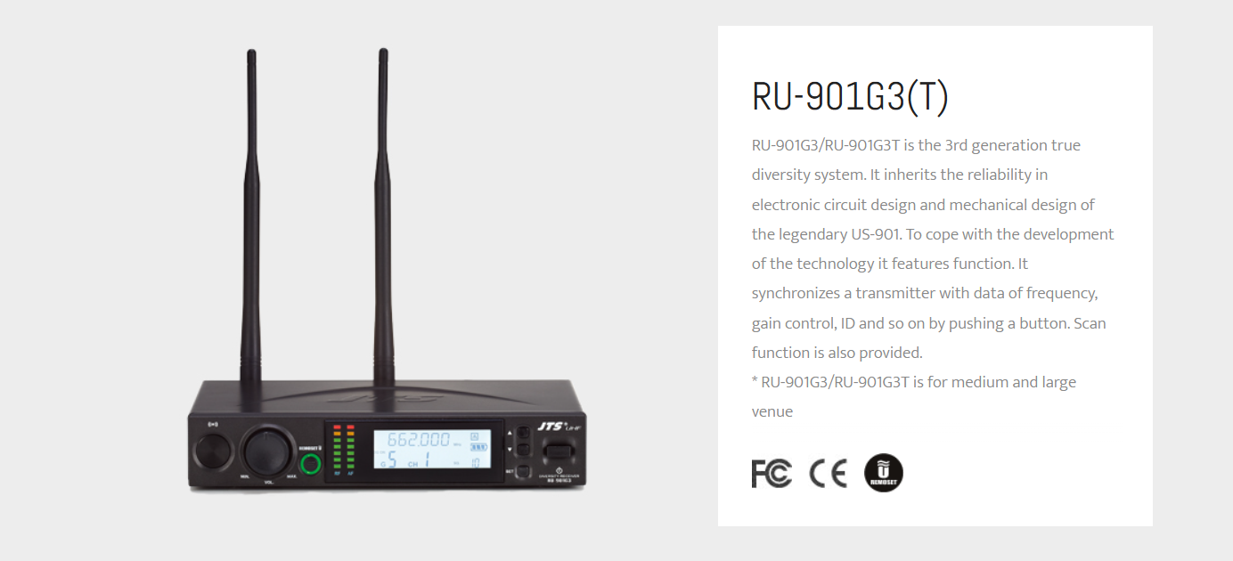 JTS RU-901 G3/RU-G3TH Single Channel Wireless System