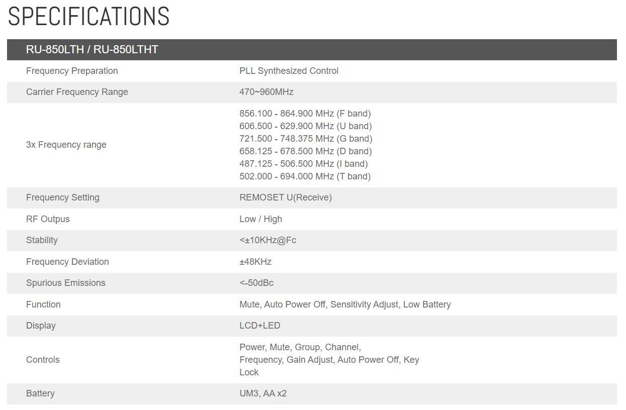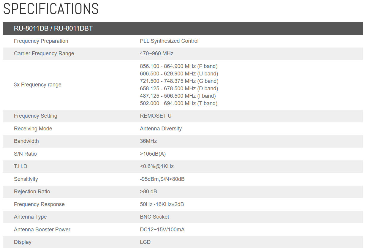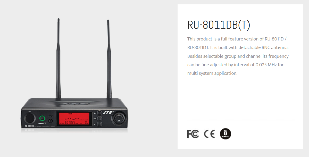 JTS RU-8011 DB RU-850LTH Single Channel Wireless System