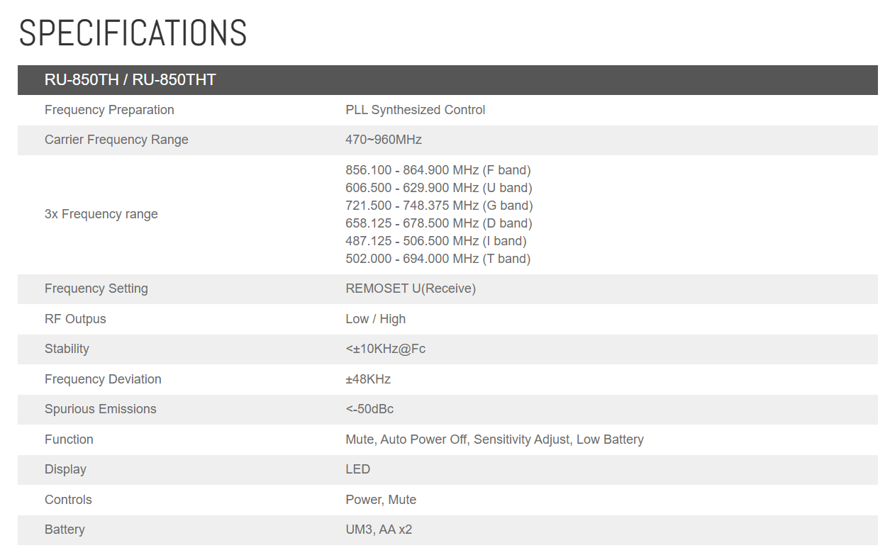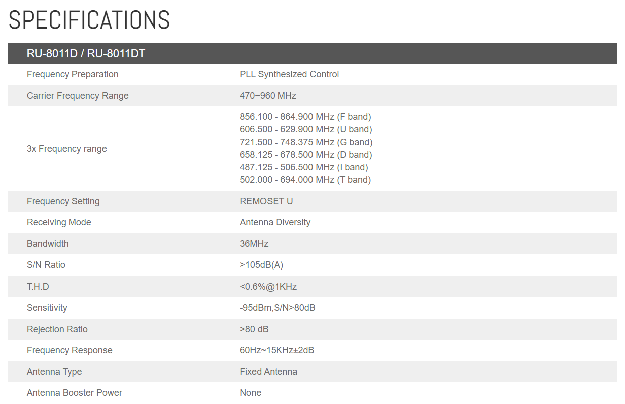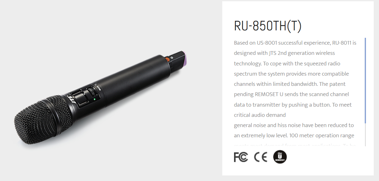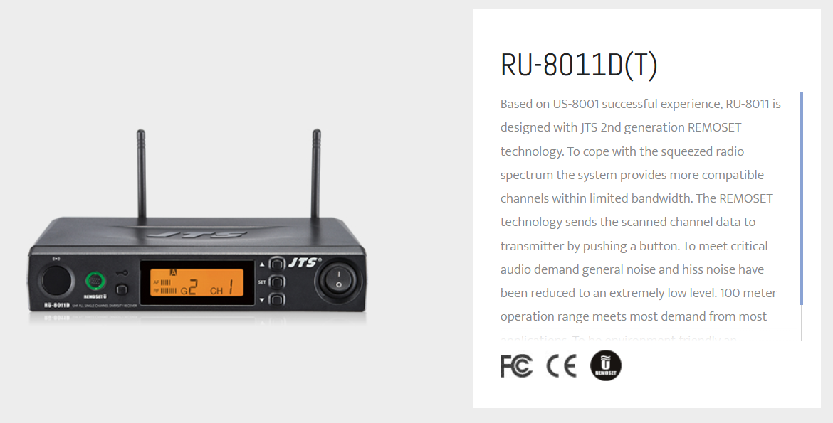 JTS RU-8011D RU-850TH Single Channel Wireless System