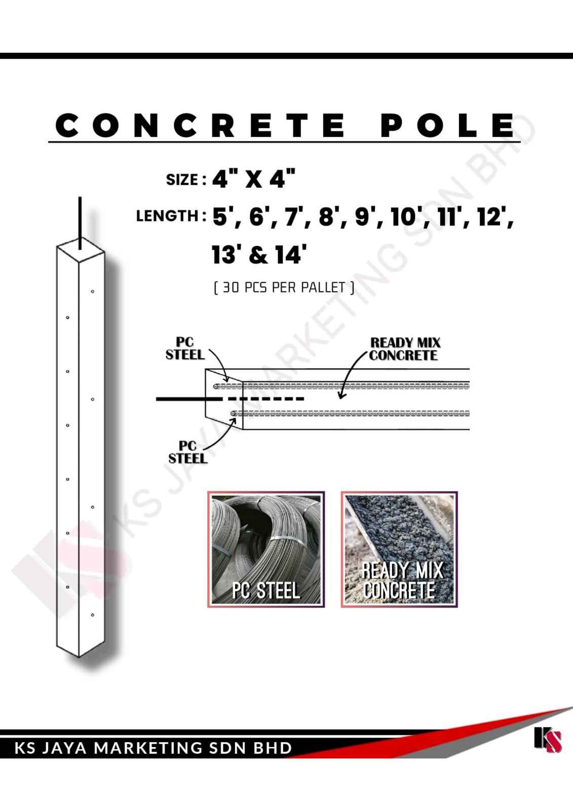 Enhance your construction projects with the durable Concrete Pole 4" x 4". This precast concrete product is perfect for various applications such as fencing, house support, and more. Its sturdy design ensures long-lasting performance and reliability.