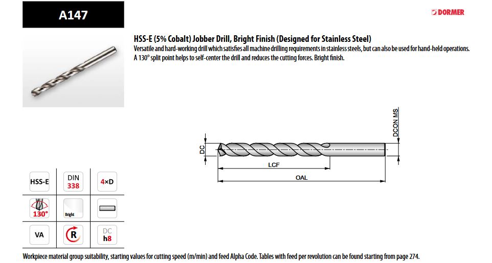 A147 HSS-E 5% COBALT JOBBER DRILL