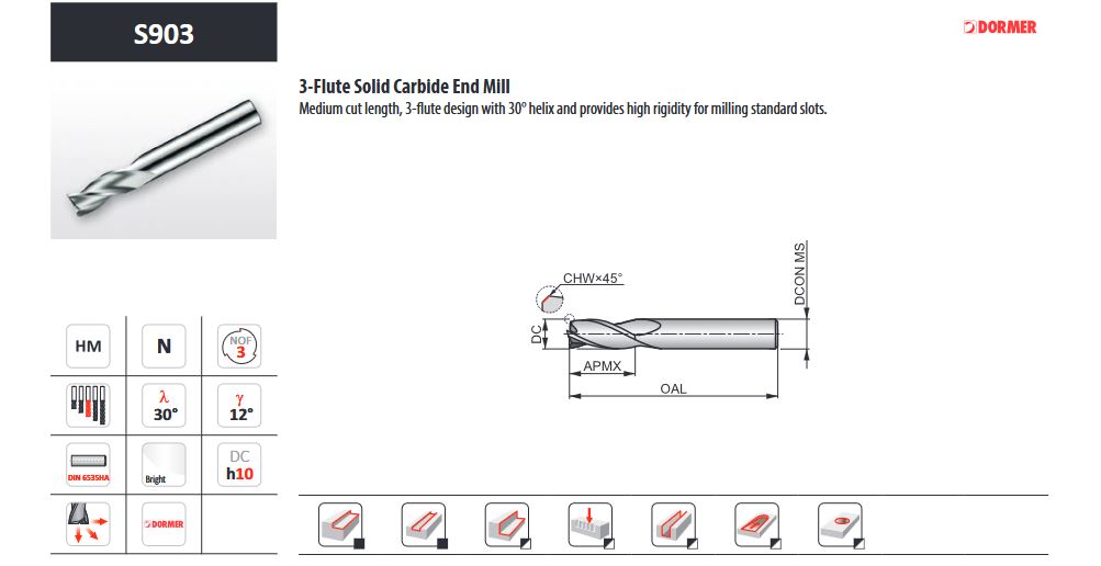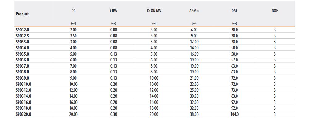 S903 3-FLUTE SOLID CARBIDE ENDMILL
