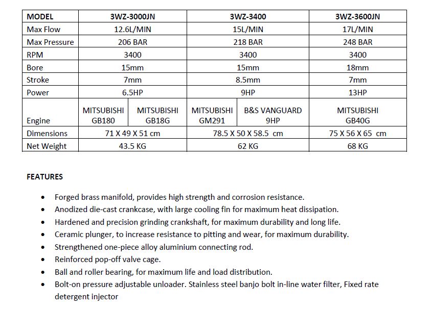 MITSUBISHI 3WZ-3000JN ENGINE PRESSURE WASHER