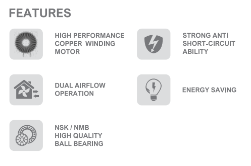The first ever Dual Airflow Wall Mounted Ventilation Fan in Malaysia; best suited for kitchens, washrooms, and even altar rooms for optimum air dilution.