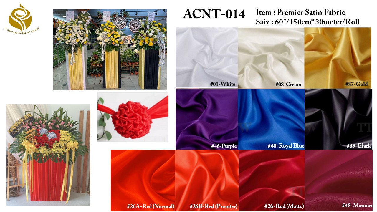 Elevate your creations with our Premier Satin Fabric, a luxurious material known for its soft, silky texture and elegant sheen. Perfect for fashion, décor, and event styling, this fabric offers a premium finish with excellent drape.
