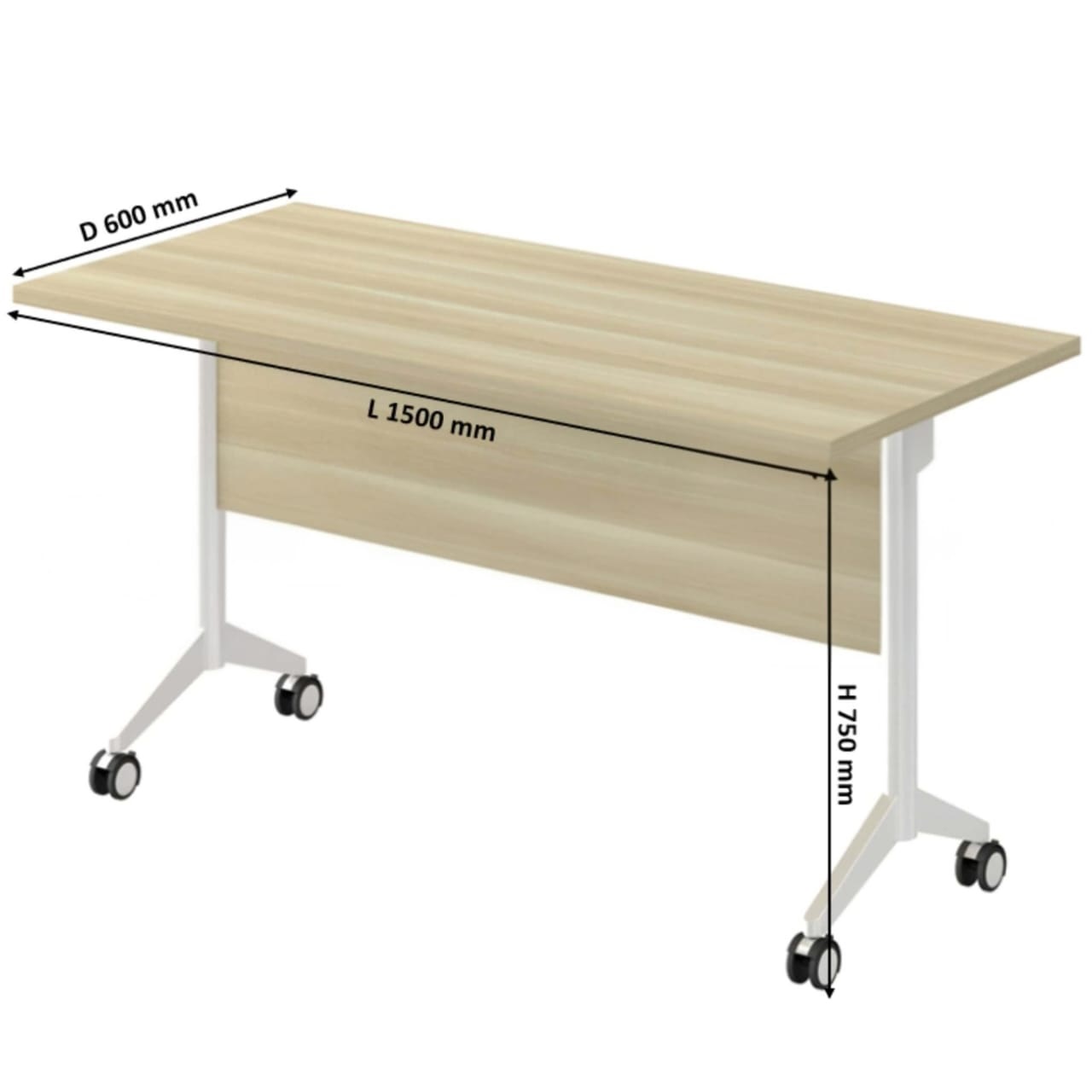 A3: The TREND(3) folding training table comes in a 5 feet size (approx. 1500W x 600D x 750H mm), ideal for individual or paired use.