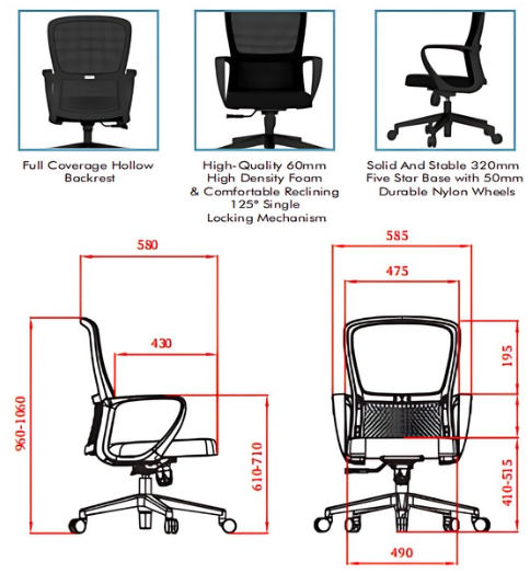 Product Specifications: DRM-697 Ergonomic Medium Back Mesh Chair | Ergonomic Chair | Office Mesh Chair | Comfortable Chair