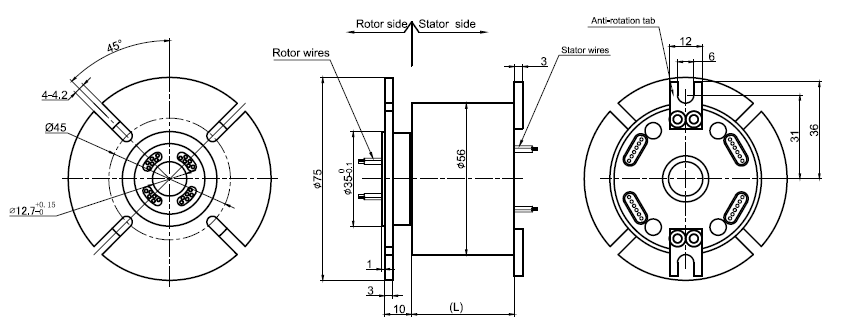 stator and rotor for simplified electrical connections.It can transmit signal(2A), 10A, multiple 10A