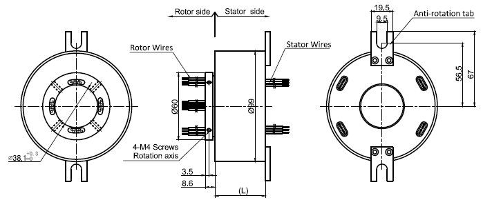 and rotor for simplified electrical connections.It can transmit signal(2A), 10A, multiple 10A current