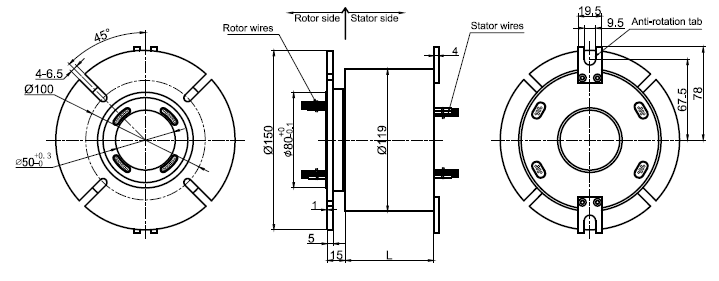stator and rotor for simplified electrical connections.It can transmit signal(2A), 10A, multiple 10A