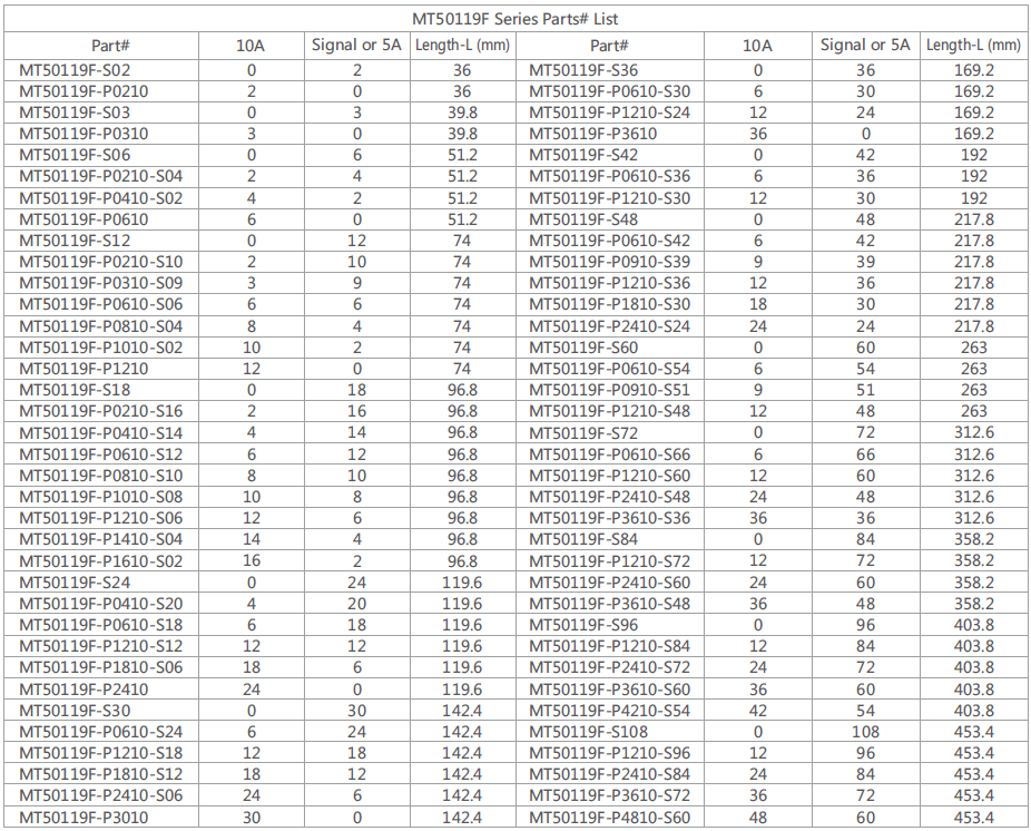 MT50119F series are standard, off-the-shelf products, Color-coded lead wires are used onboth the