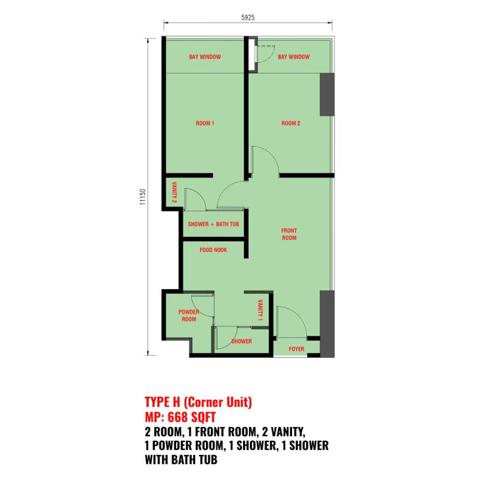 Unit Size | Type A - 351sf (1 Room) Type B - 373sf (2 Room) Type C - 457sf (1 Room) Type D - 511sf (2 Room) Type E/F - 568 / 640sf (2 Room) Type G - 666 / 700sf (Dual Key) Type H - 668sf (2 Room) |
