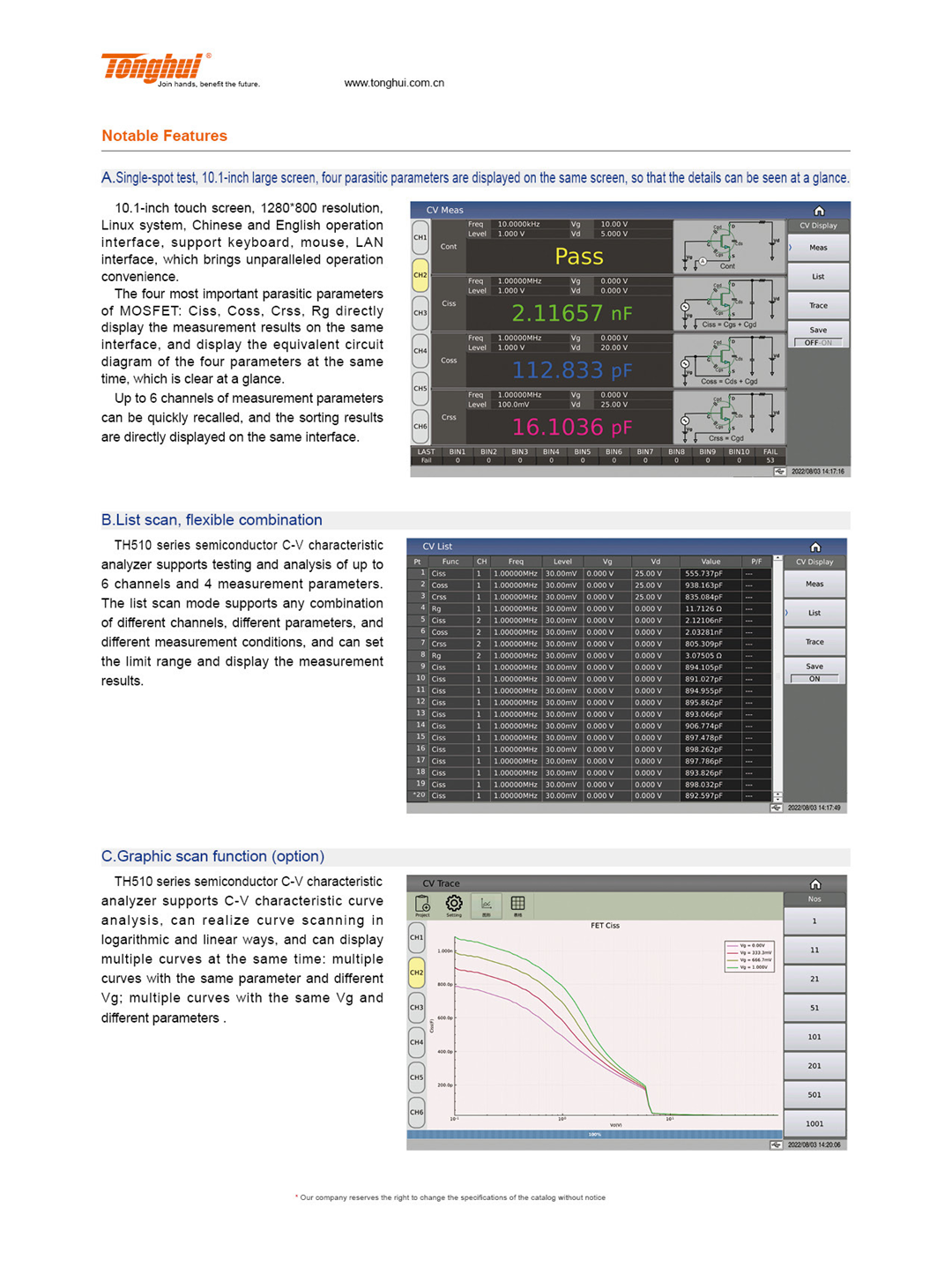 • Four parasitic parameters (Ciss, Coss, Crss, Rg) are measured and displayed on the same screen