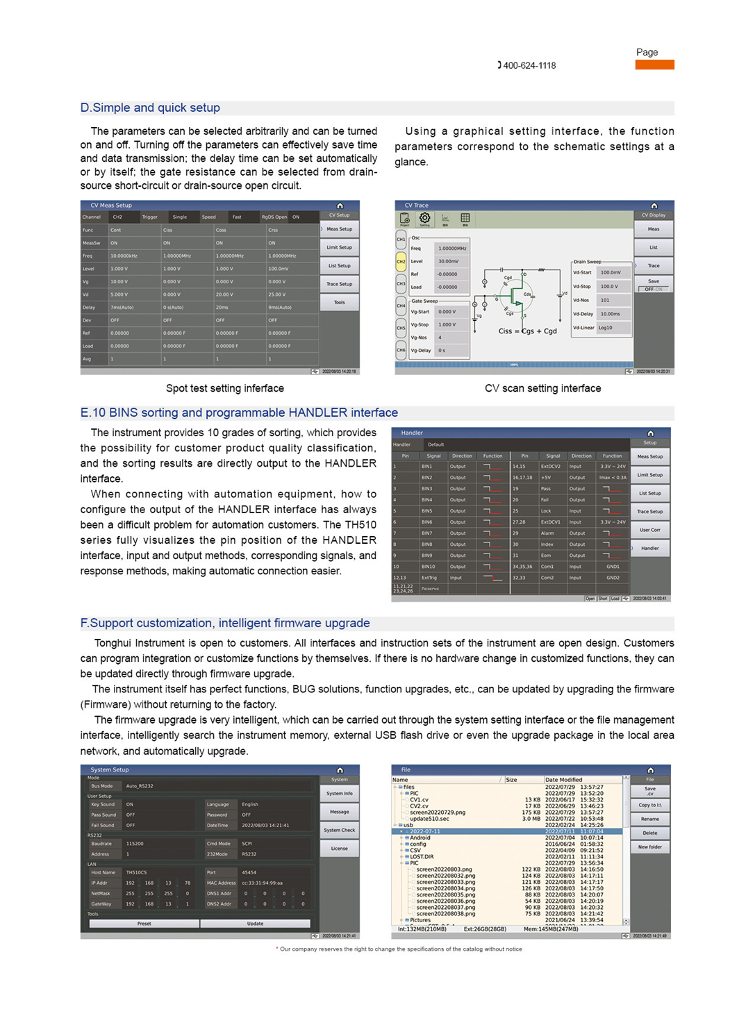 Bin Judgement | A maximum of four parameter limit ranges can be set for each bin. The corresponding bin number will be displayed within the setting range of the four test parameter results. If it exceeds the set maximum bin number range, FAIL will be displayed. Test parameters without upper and lower limits will be automatically ignored. | ||||