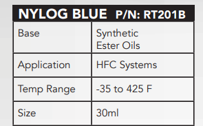 - Nylog is fully miscible and 100% compatible with the refrigerant and base compressor oils.