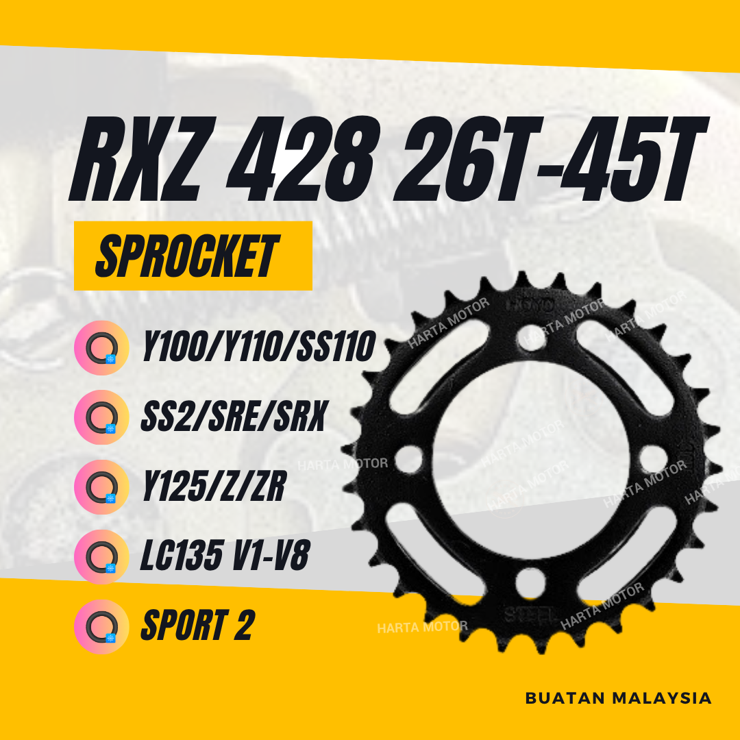 RXZ 428 REAR SPROCKET -26T-45T Y100 SPORT 2 Y110 SS110 SS2 SRE SRX Y125 Y125ZR LC135 V1-V8 SPOKET SPOCKET BELAKANG YM183