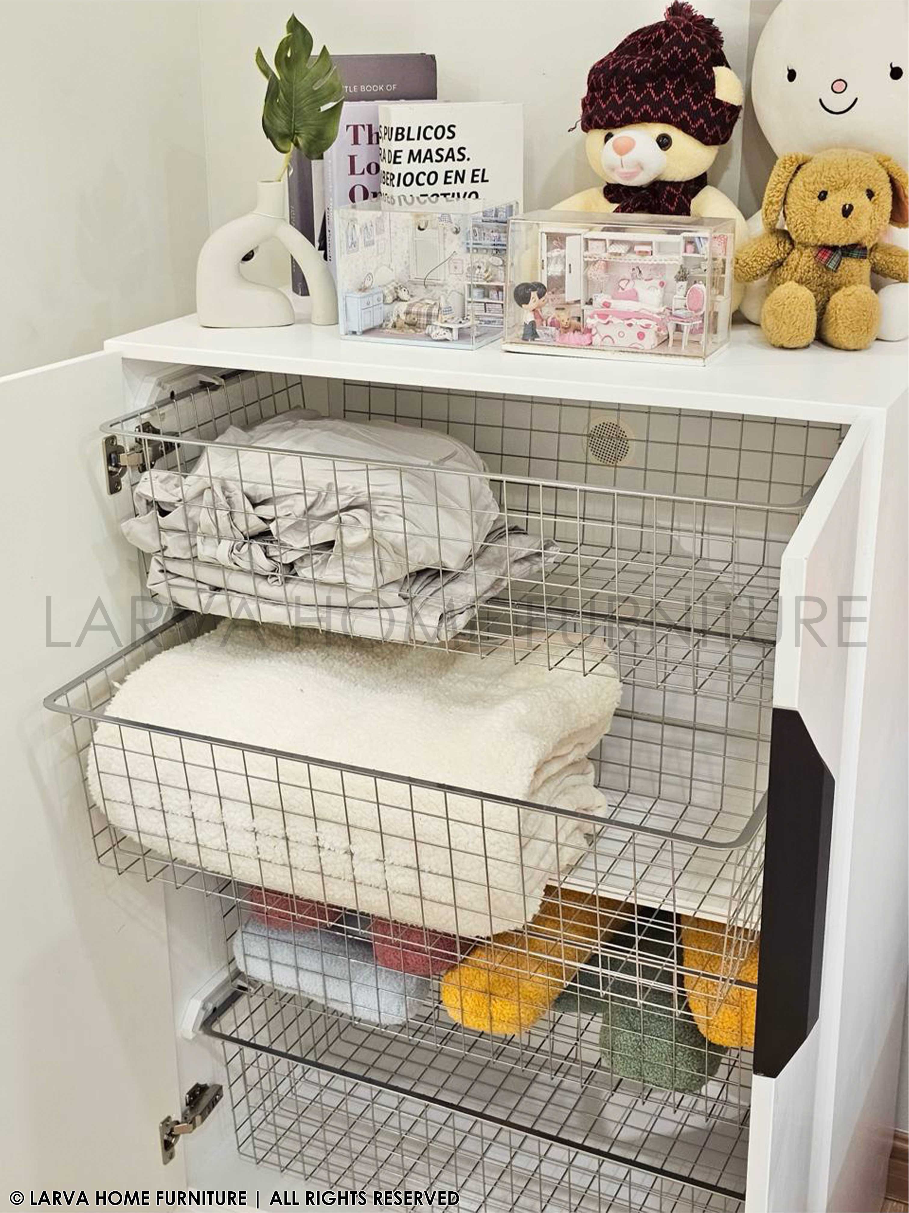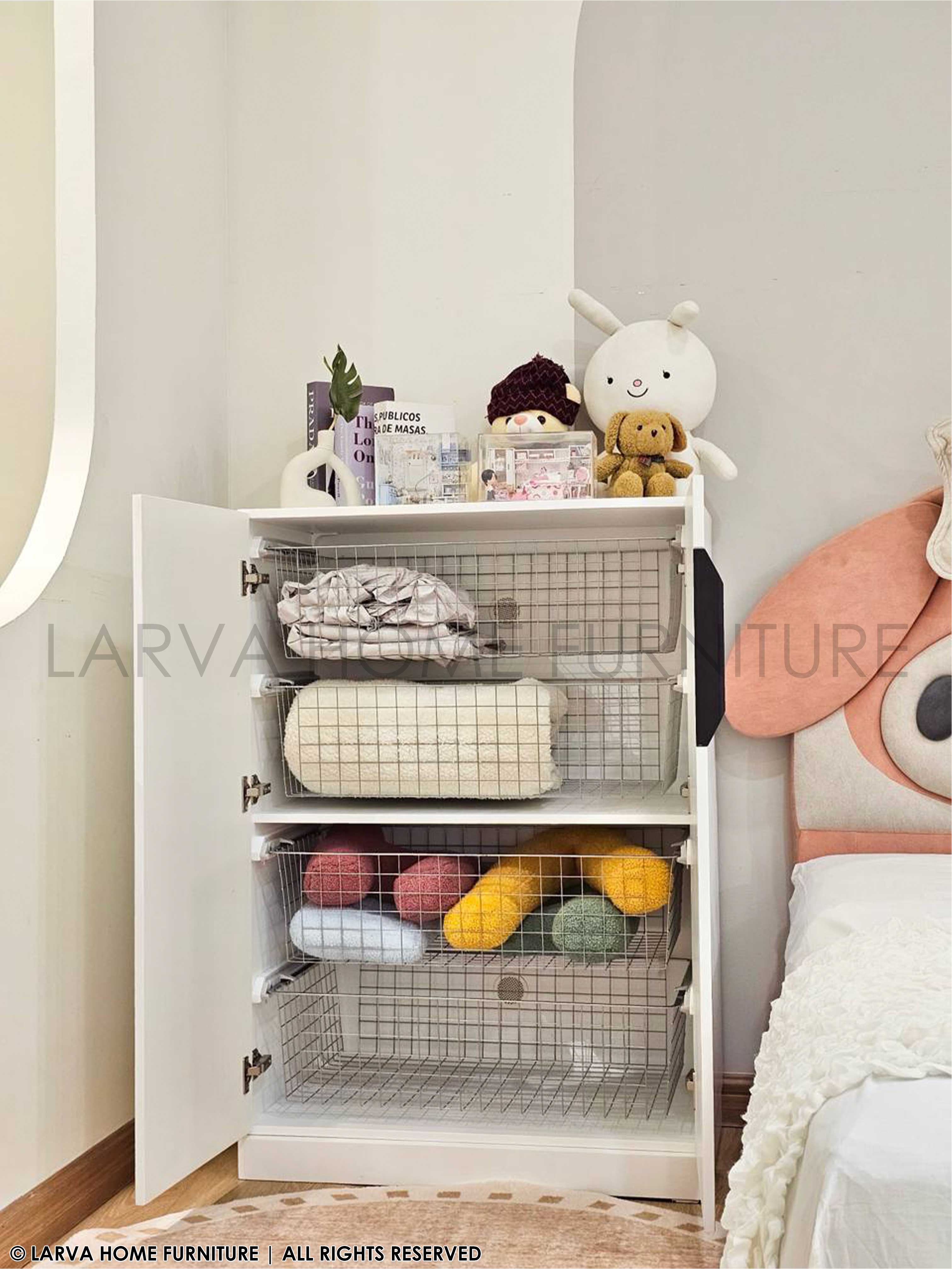A clean-lined design with a soft-toned finish, this Eliza Medium Multi Purpose Cabinet adds a calm and airy feel to any room. Its symmetrical double doors and subtle curves give it a balanced and timeless look — ideal for those who appreciate neatness and visual harmony.