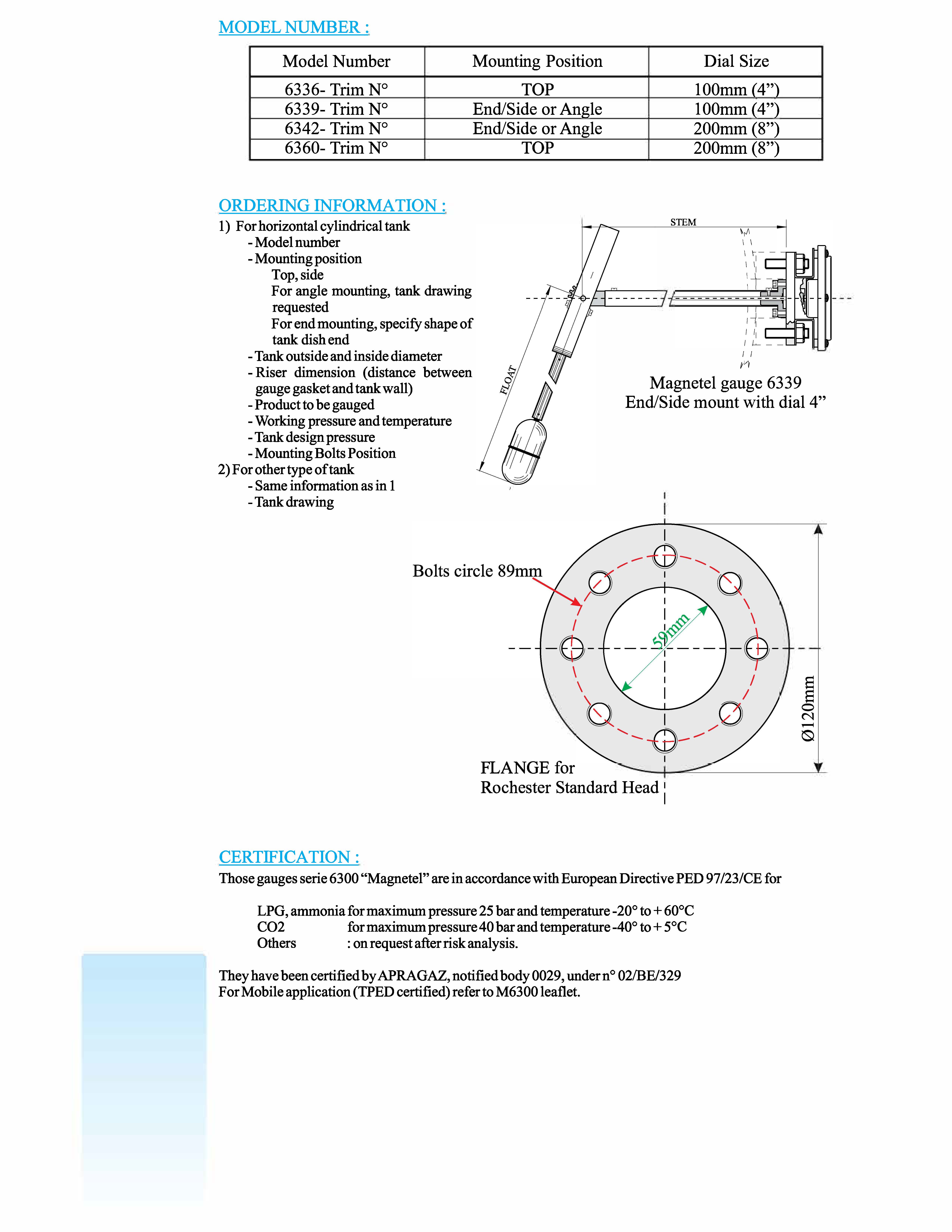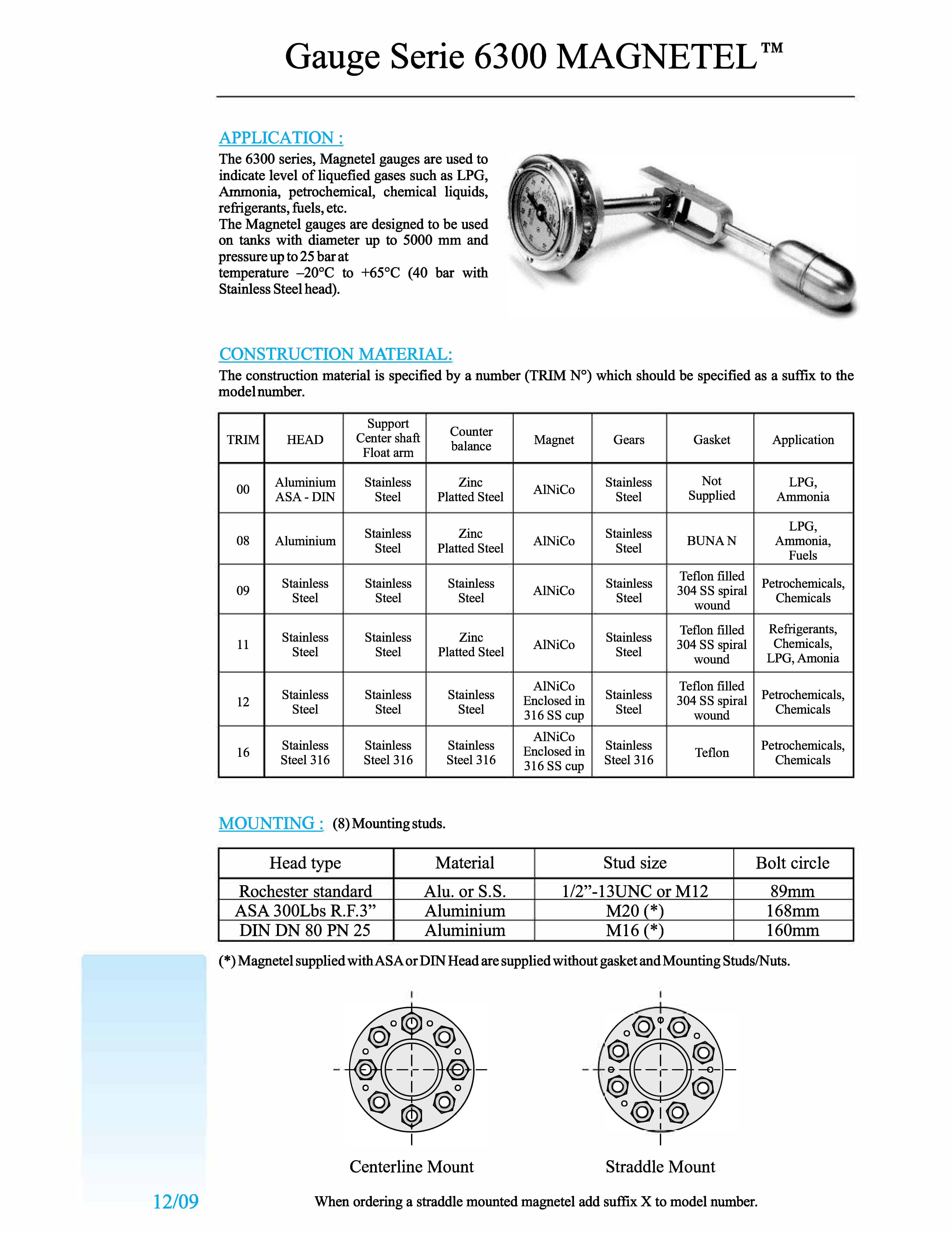 ROCHESTER - MAGNETEL LEVEL GAUGE 6300 SERIES