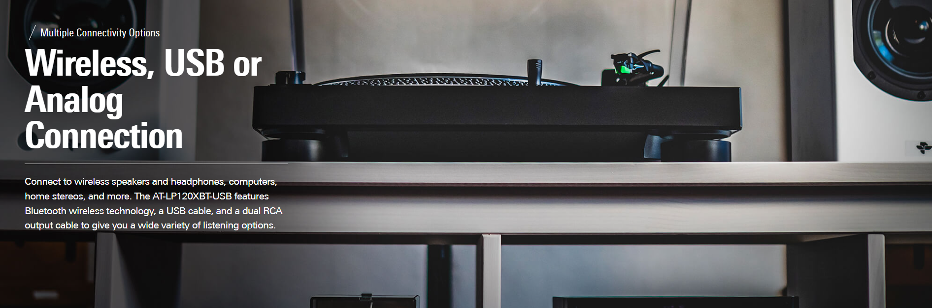 Featuring a specially designed DC servo direct-drive motor and adjustable dynamic anti-skate control, the AT-LP120XBT-USB plays 33-1/3, 45, and 78 RPM records and outputs the high-fidelity audio to the device of your choice. Use the included RCA output cable along with the built-in selectable phono preamp to connect to your home stereo or powered speakers. Use the USB cable to connect to your computer and then download the free Mac- and PC-compatible Audacity recording software, or software of your choice, to start converting your records to digital audio files. Or use the Bluetooth wireless technology to pair the turntable with wireless speakers, headphones or other devices, including those that support the high-quality Qualcomm® aptX™ audio codec.