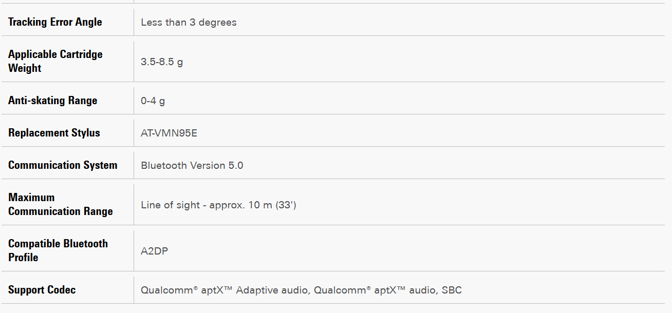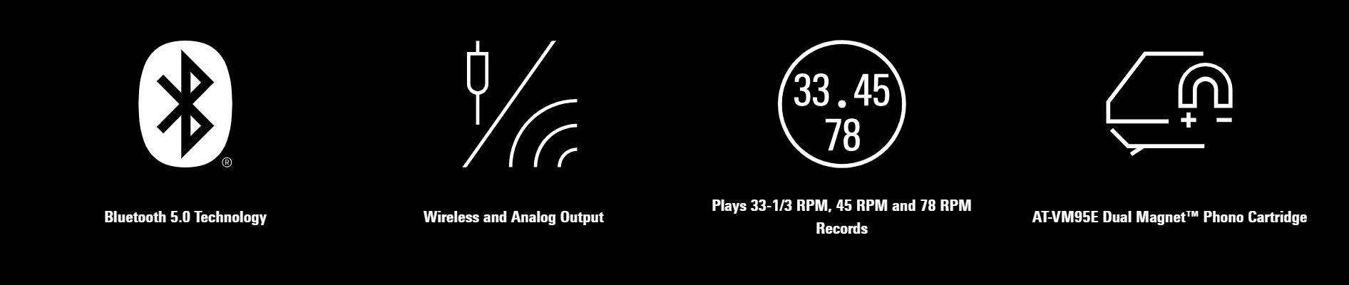 This fully manual turntable is modeled after the AT-LP120XUSB, but adds the convenience of Bluetooth® wireless connectivity to the existing analog and USB outputs.