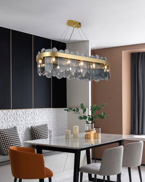 Nordic Post Modern Minimalist 800mm Smoke Grey Glass Chandelier