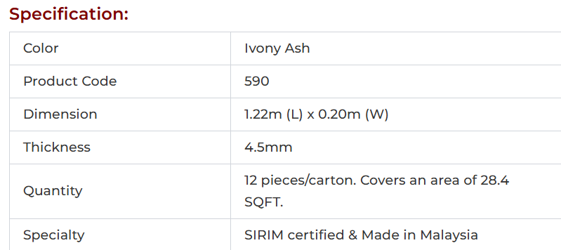 UNIQUE MALAYSIA SPC FLOORING IVONY ASH 590 adalah pilihan utama anda, direka untuk ketahanan yang luar biasa dan rintangan air, menjadikannya sesuai untuk kawasan kediaman, dapur, bilik mandi, dan juga ruang komersial yang mencabar seperti pejabat, kedai runcit, tempat hospitaliti, dan kemudahan penjagaan kesihatan. Asasnya yang kukuh menahan kesan dan calar, memastikan jangka hayat walaupun dengan trafik kaki yang tinggi. Sebagai pengedar dan pemborong terkemuka, MAN KIAN HARDWARE & TRADING SDN BHD menyediakan lantai yang mudah dijaga, bersih, dan serba boleh ini, memastikan pelaburan yang tahan lama dan berimpak tinggi untuk sebarang aplikasi.