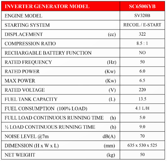 SENCI Gasoline Inverter Generator SC6500iYB Recoil Start/E-Start 322CC 50hz 220v C003