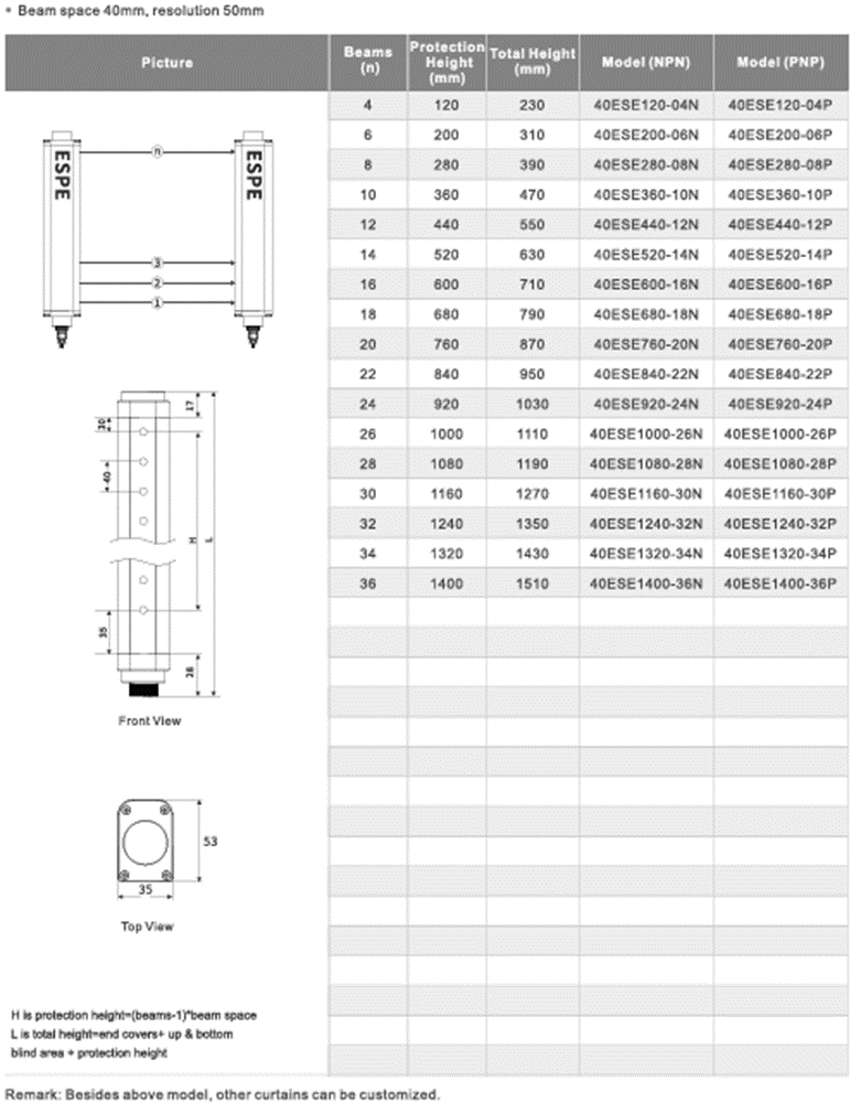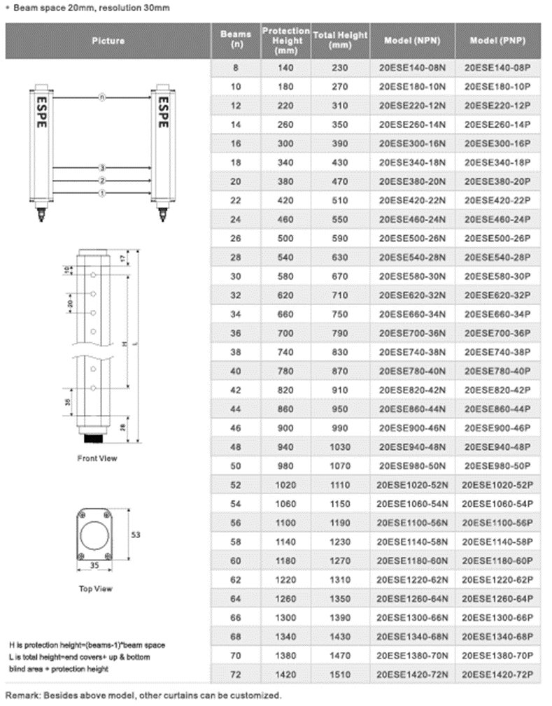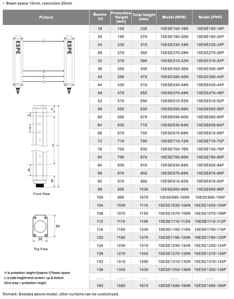 To meet requirement of customers from different industry, ESPE designed Type 4 curtain, economical curtain, ultra-compact curtain, no dead zone curtain etc.