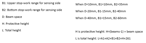 Protective height | Protective height= (N-1)" beam space, N is beam quantity |