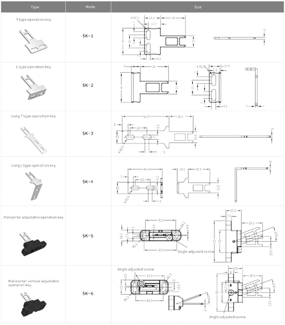 To meet different installation environment, ESPE developed various key to ensure flexible installation.