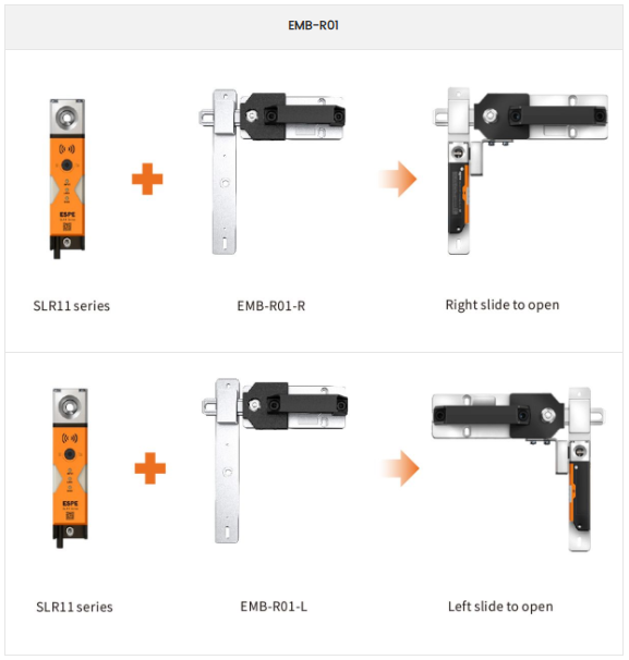 ESPE safety door switches are used on fences of potentially dangerous machines and areas to monitor opening and closing of doors to ensure people safety protection.