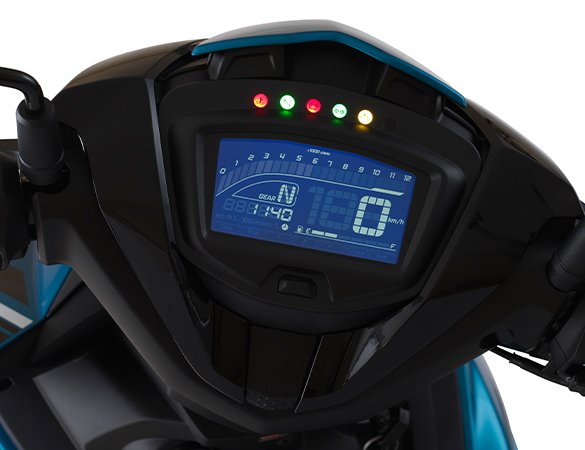 New Speedometer design featuring an LCD meter panel with brighter, more complete riding indicators that can be operated easily.