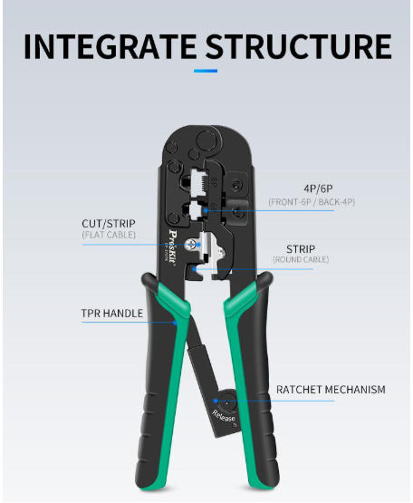 PRO'SKIT CP-376TR 4P/6P/8P TELECOM CRIMPING TOOL (190MM)