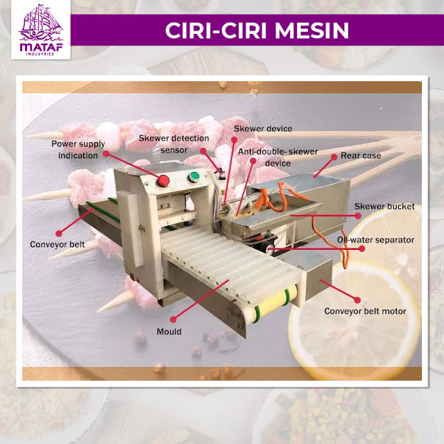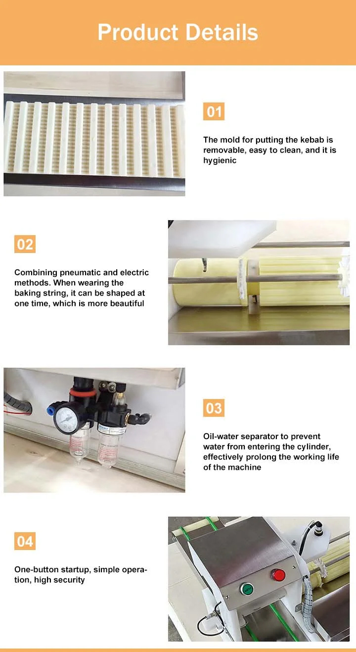 This machine saves time, reduces labor costs, and ensures neat and uniform satay skewering.