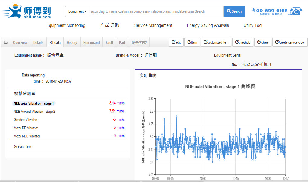 Vibration on line monitoring based on ISO10816 standard