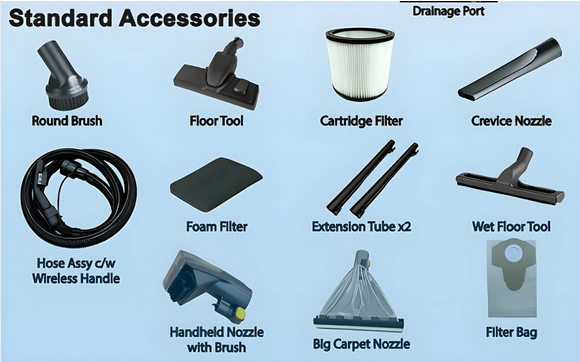 The ultimate Vacmaster 3-in-1 wet and dry vacuum for home, garden and workshop. A heavy-duty canister vacuum designed to deliver professional cleaning for your business and home, time and time again. The powerful suction performance and commercial specifications of the Vacmaster, including 180 air watts of suction power, a nozzle for all floors, a large capacity of 23L, a working range of 13m and an operation ultra-quiet, offer an effective cleaning solution through carpets and hard floors. An advanced four-stage filtration system with washable HEPA 13 filters traps 99.9% of fine dust and allergens in a self-sealing bag for convenient “plume-free” disposal. Compact and easy to store.