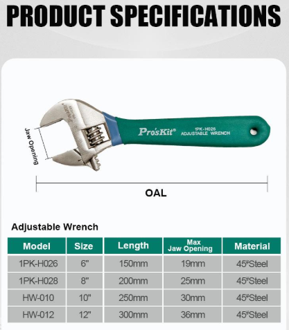 PRO'SKIT 1PK-H028 ADJUSTABLE WRENCH - 8"