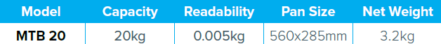 Versatile and portable, the MTB offers excellent value for tasks such as weighing infants, toddlers or small animals. A cleverly designed ergonomic cradle – which provides comfortable support for babies and locks securely in place – removes easily to reveal a non-slip rubber mat underneath, simplifying the task of weighing toddlers or small animals.