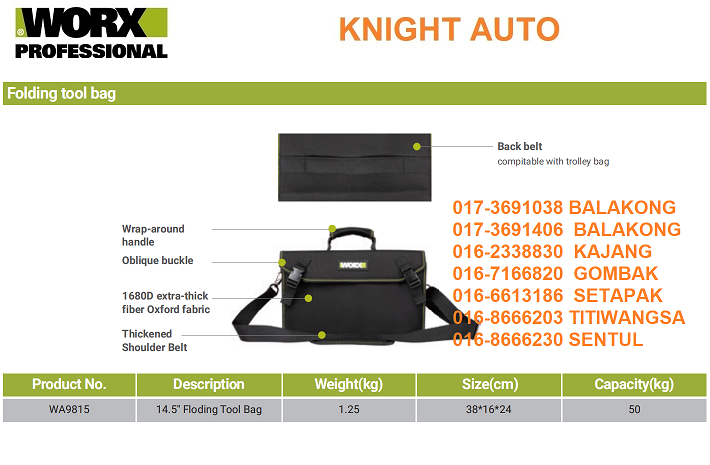 WORX WA9815 Folding tool bag 14.5" Capacity 50kg C007