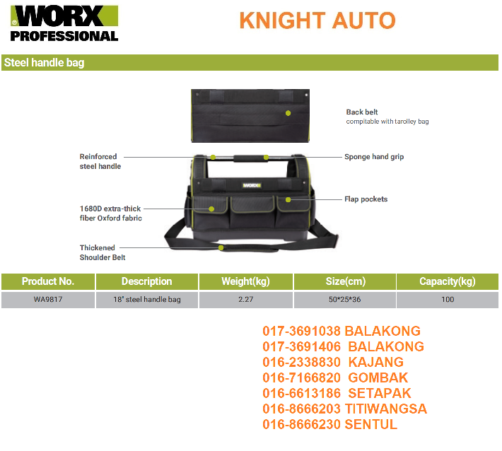 WORX WA9817 Steel handle bag 18" Capacity 100kg C007