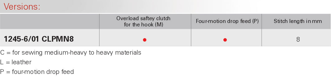 The PFAFF/1245-6/01 CLPMN8 is a high-performance single-needle lockstitch sewing machine with unison feed, designed for professional use in industries such as furniture, automotive upholstery, leather goods, and heavy materials. Built with precision, durability, and advanced features, it ensures smooth operation and long-lasting reliability.