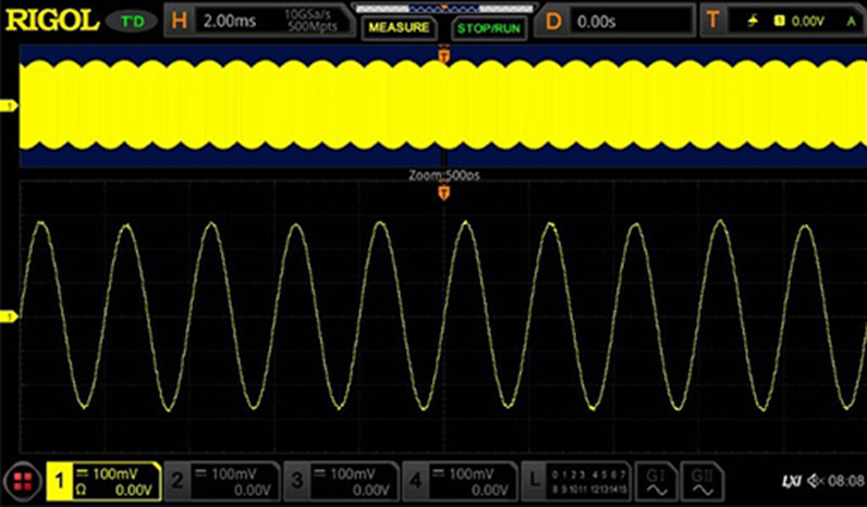 Waveform is fully captured into the memory and display on the screen. The MSO8000A series oscilloscope can accurately capture and display results of high-frequency signal testing with multiple cycles.