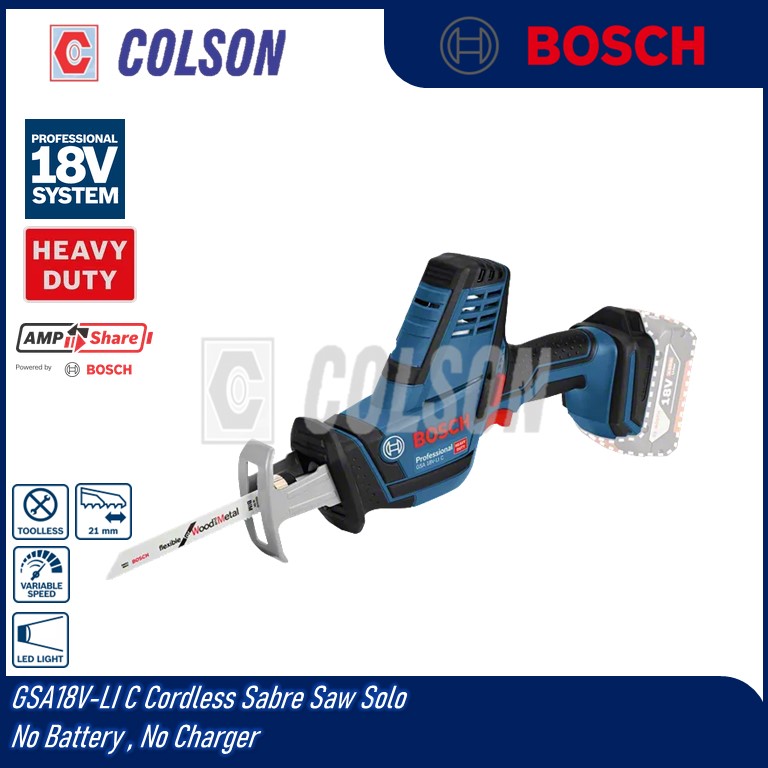 - GSA 18V-LI C consists of variable cutting speed for sawing a wide variety of materials