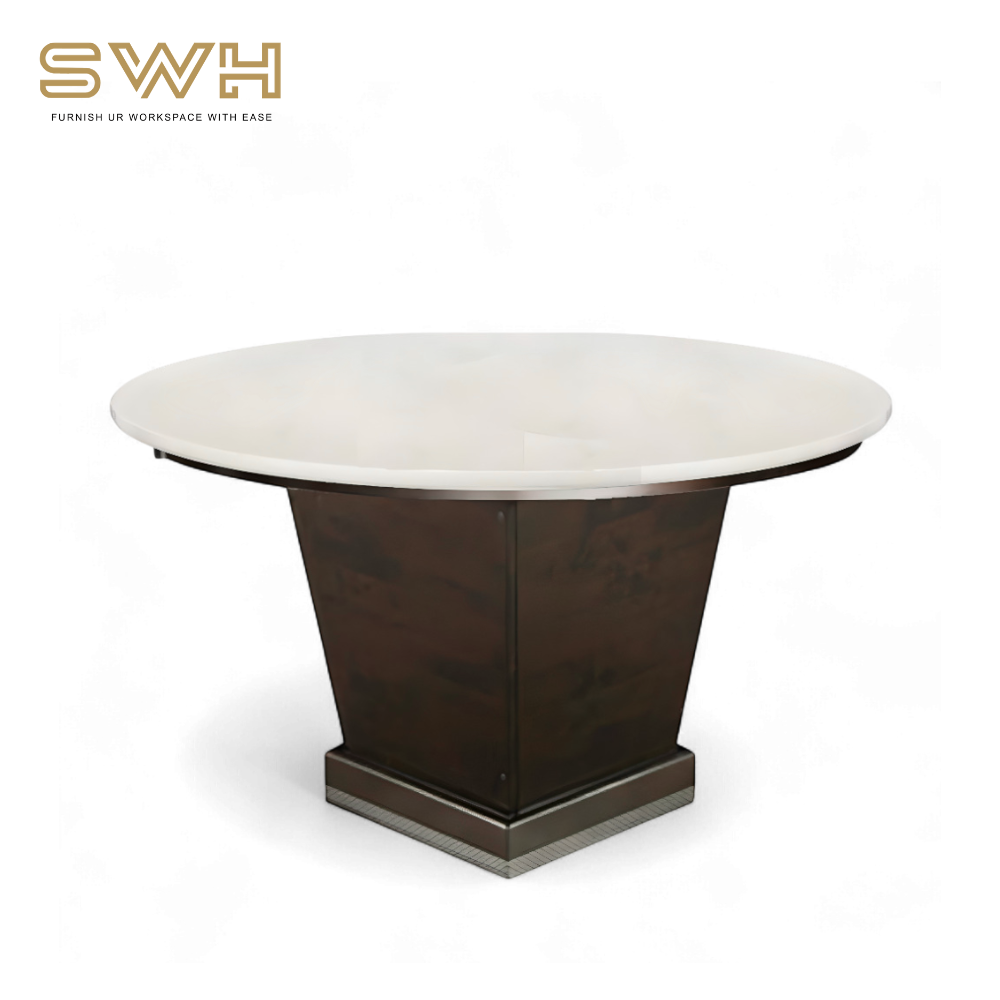 Round Natural Marble Dining Table (4ft) | Natural Marble + Solid Wood Dining Table