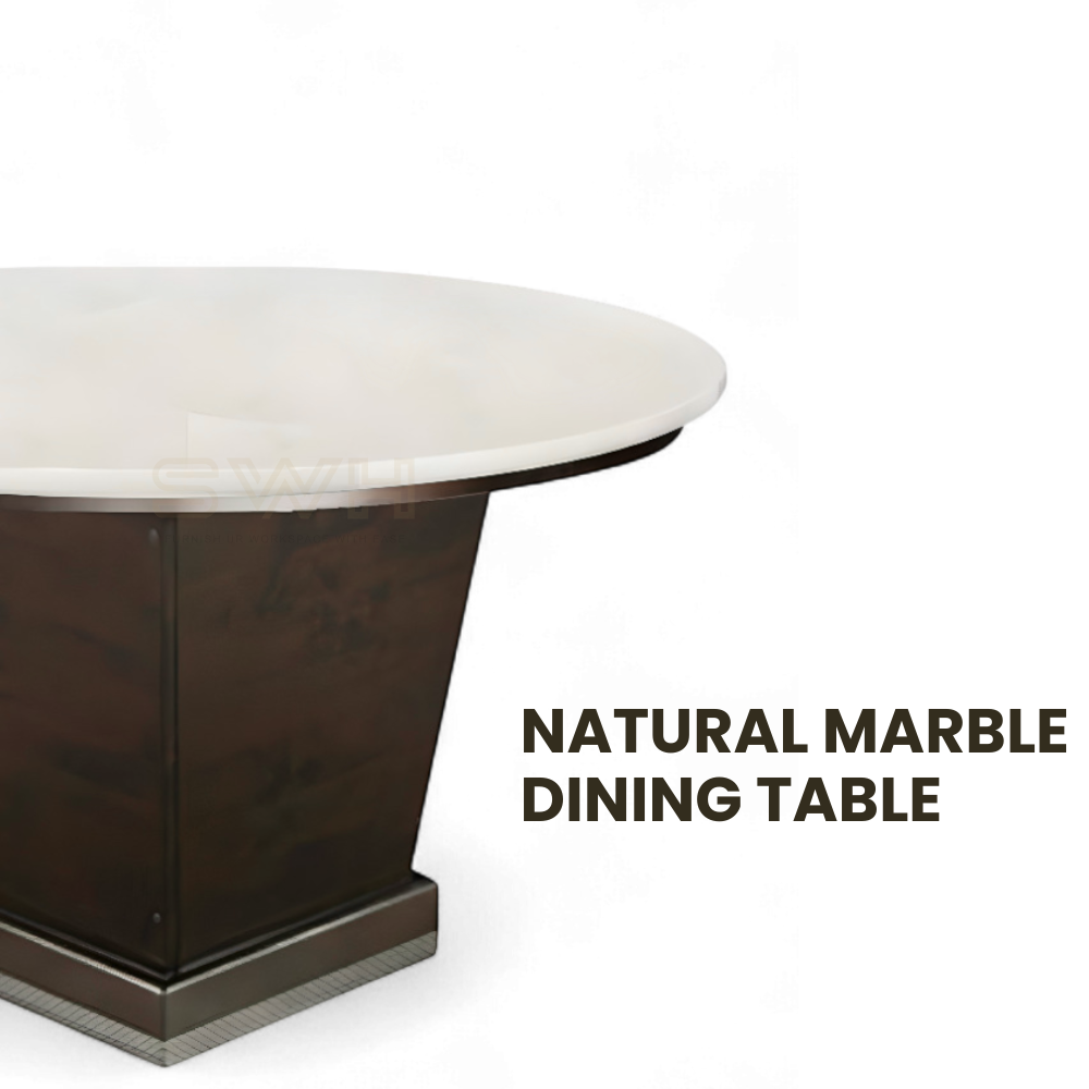 Round Natural Marble Dining Table (4ft) | Natural Marble + Solid Wood Dining Table ( Kopitiam Series )