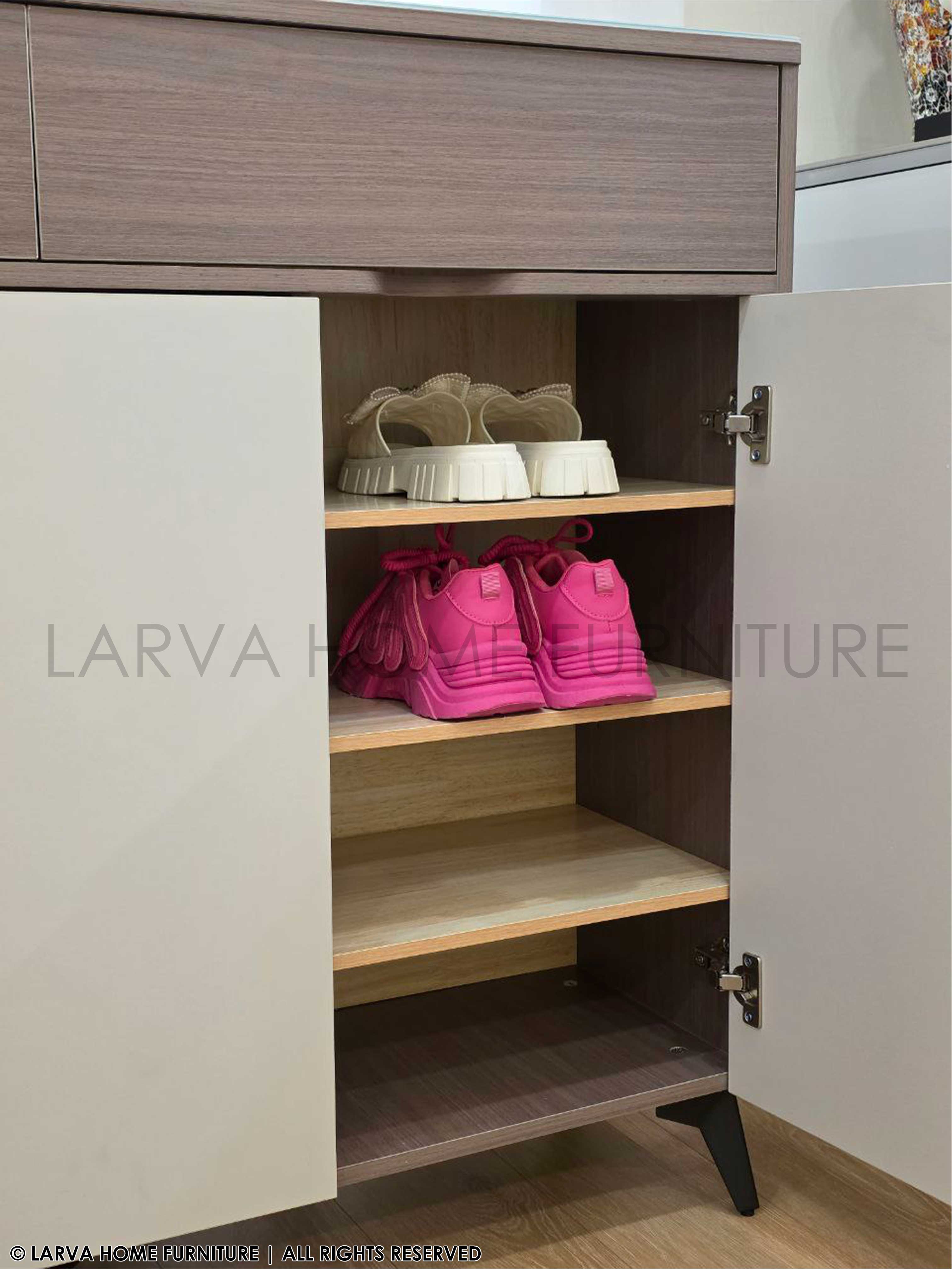 A Odin Shoe Cabinet designed for today’s modern homes! Its clean lines and minimalist form make it the perfect fit for any hallway or entryway. With clever compartments, it keeps your shoes neatly hidden while maintaining a polished and stylish look. Say goodbye to clutter and hello to effortless organization!