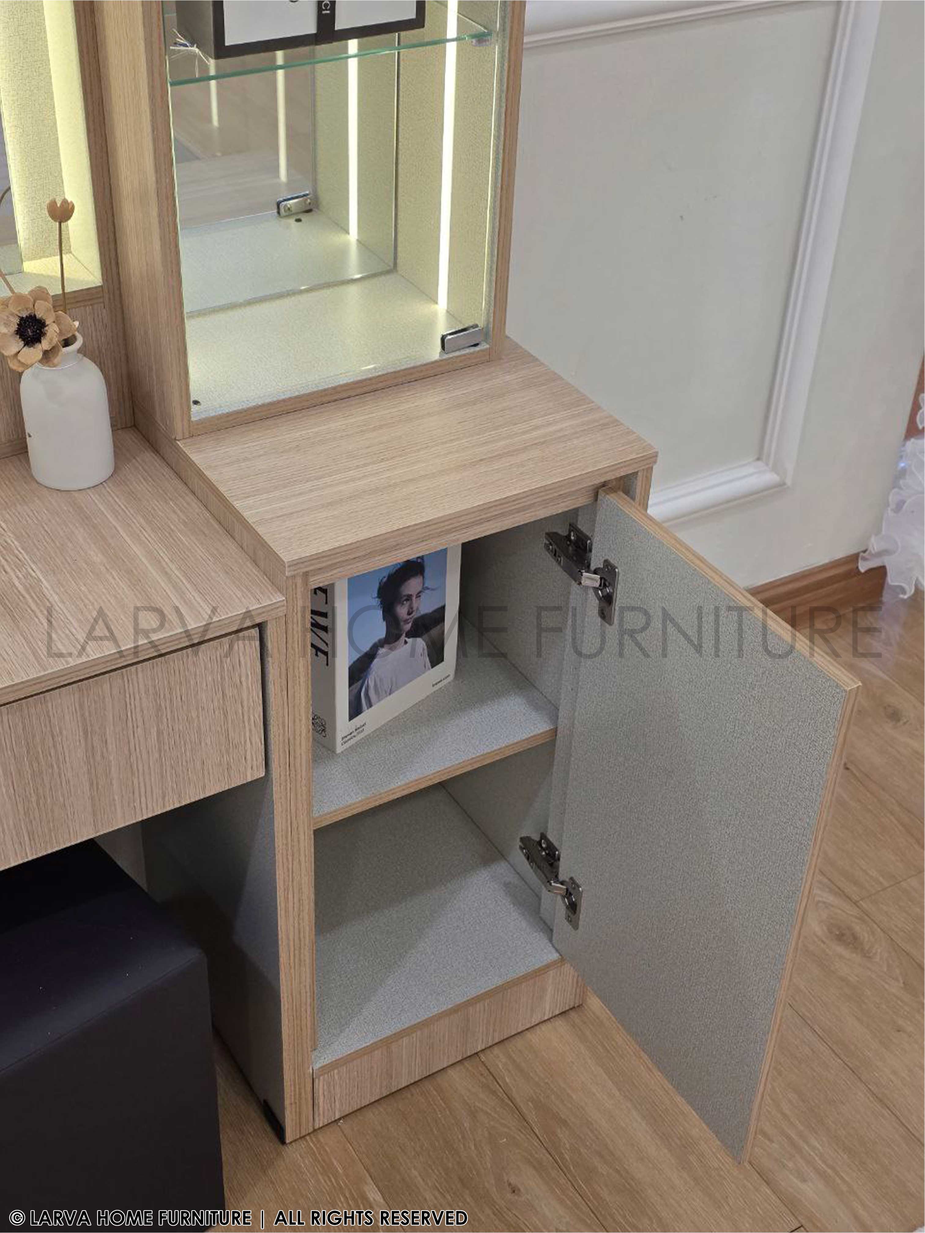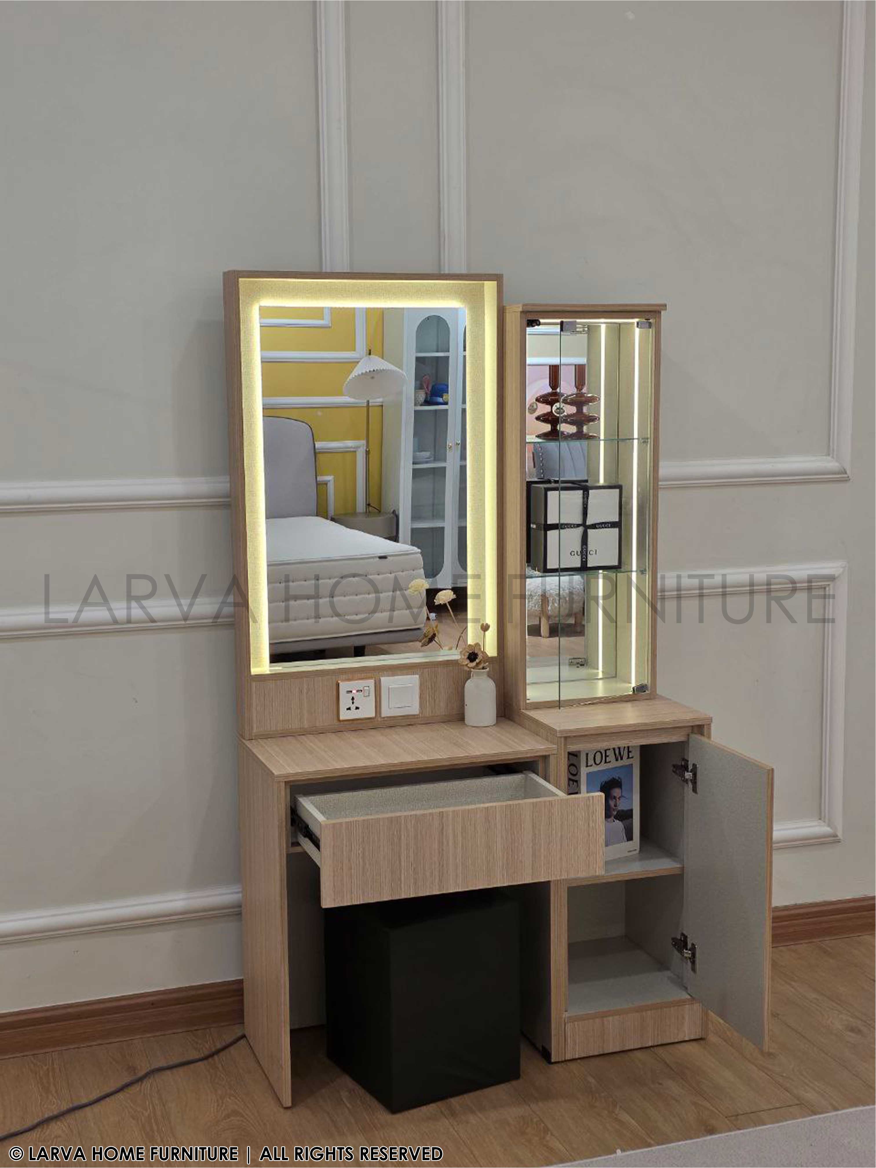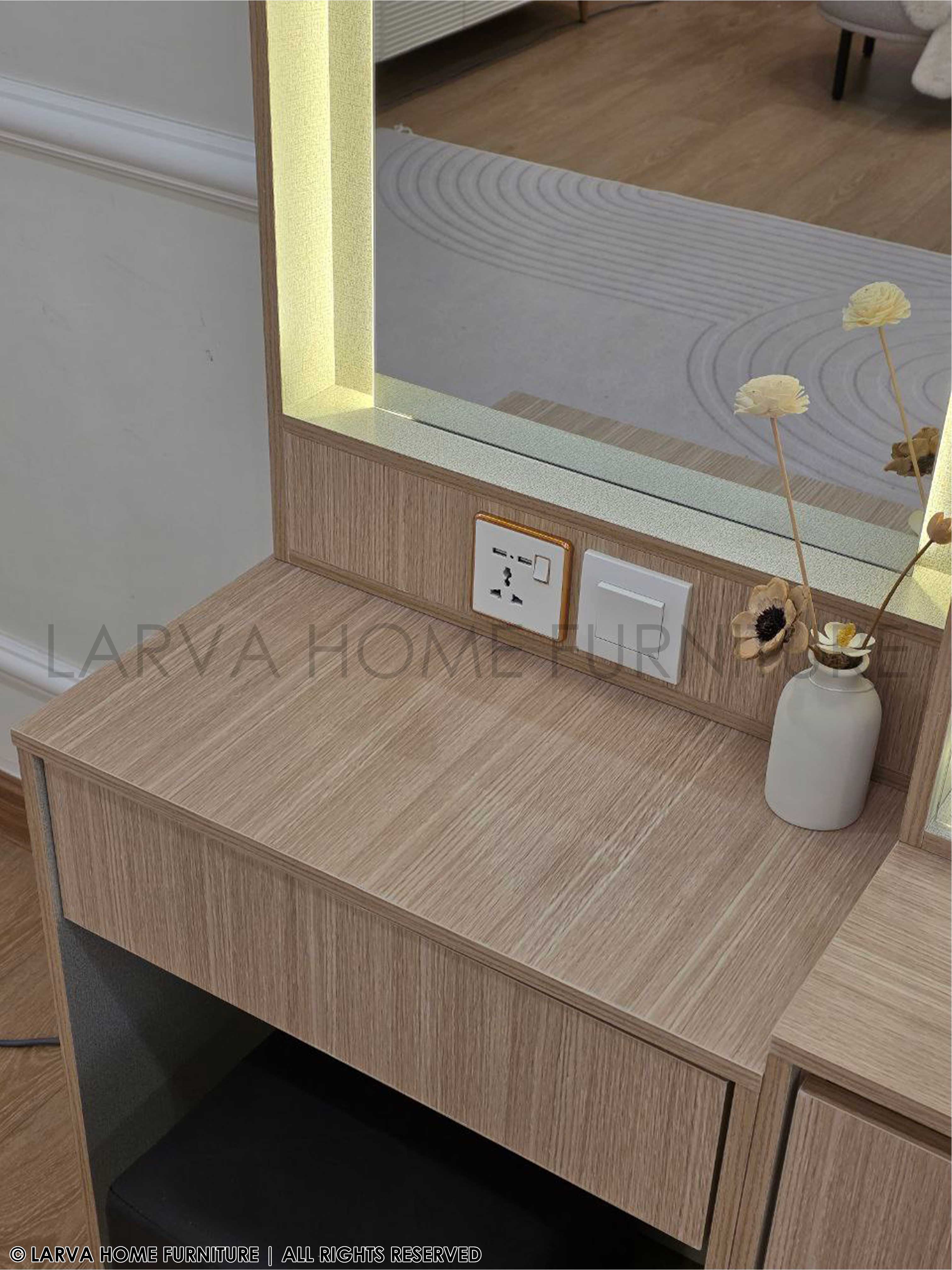 Designed for beauty and function, this Brook Dressing Table combines sleek lines with clever storage. The wide mirror brightens your space, while the compartments keep everything neatly organized. A must-have for a modern lifestyle!