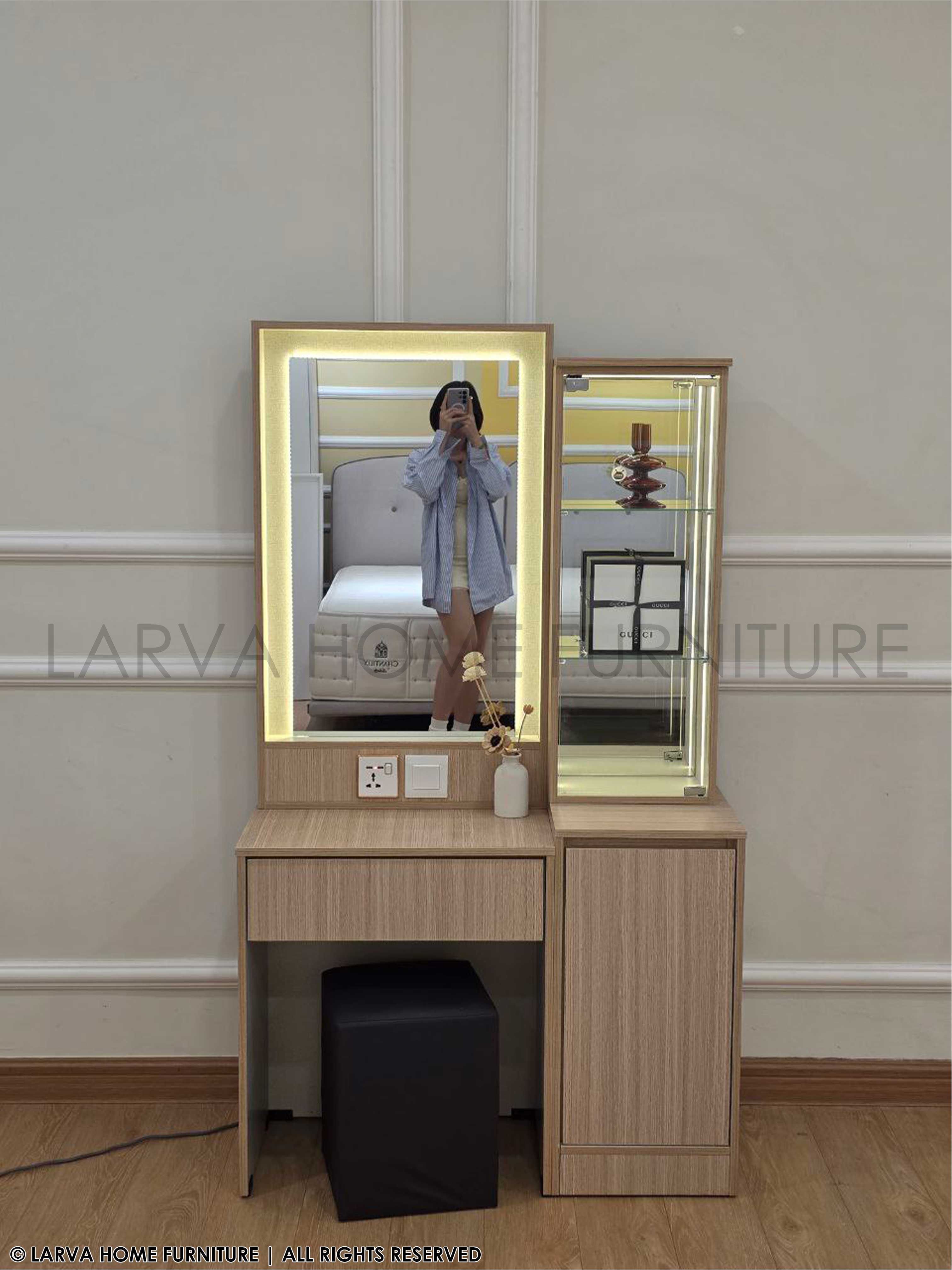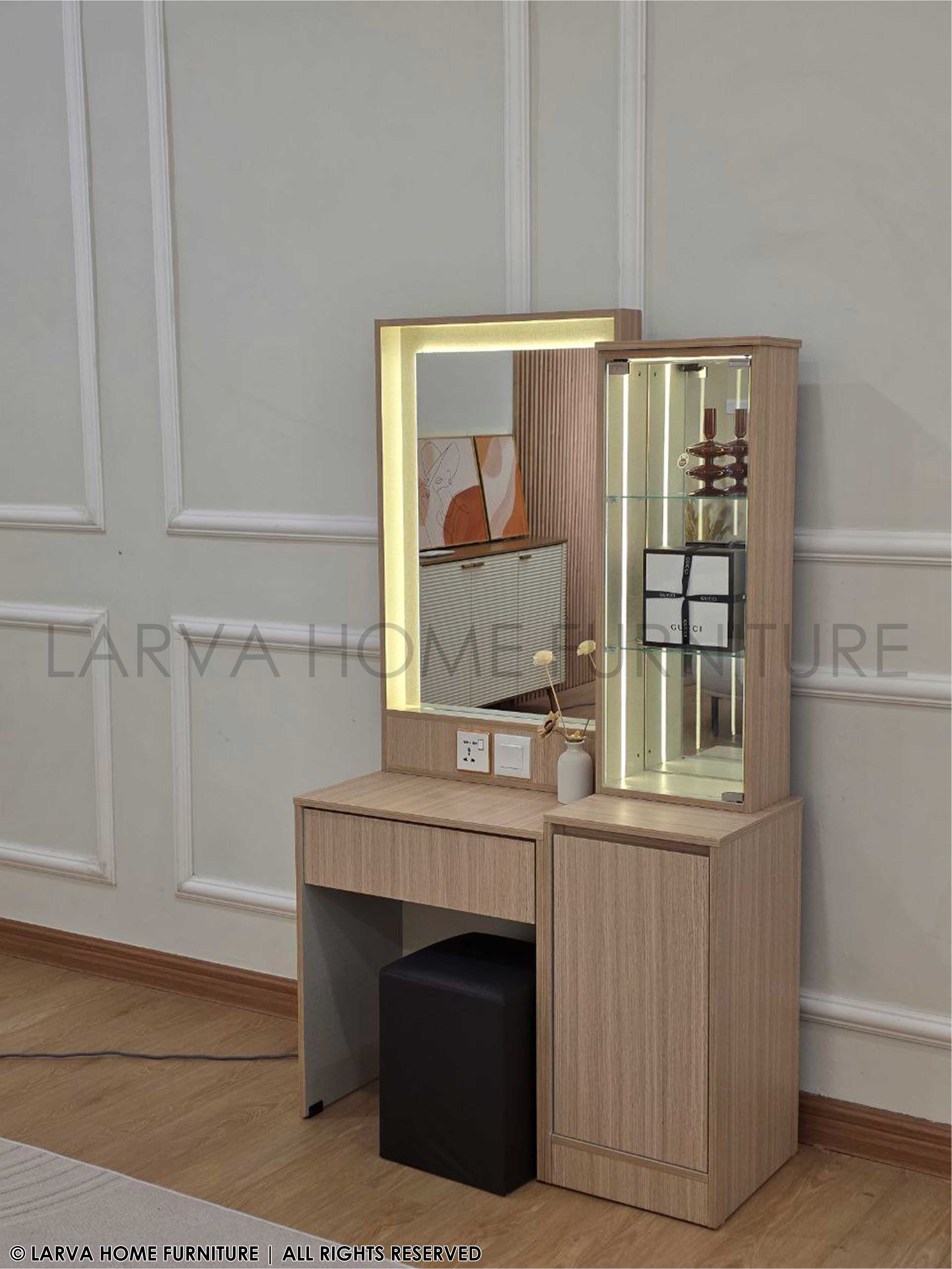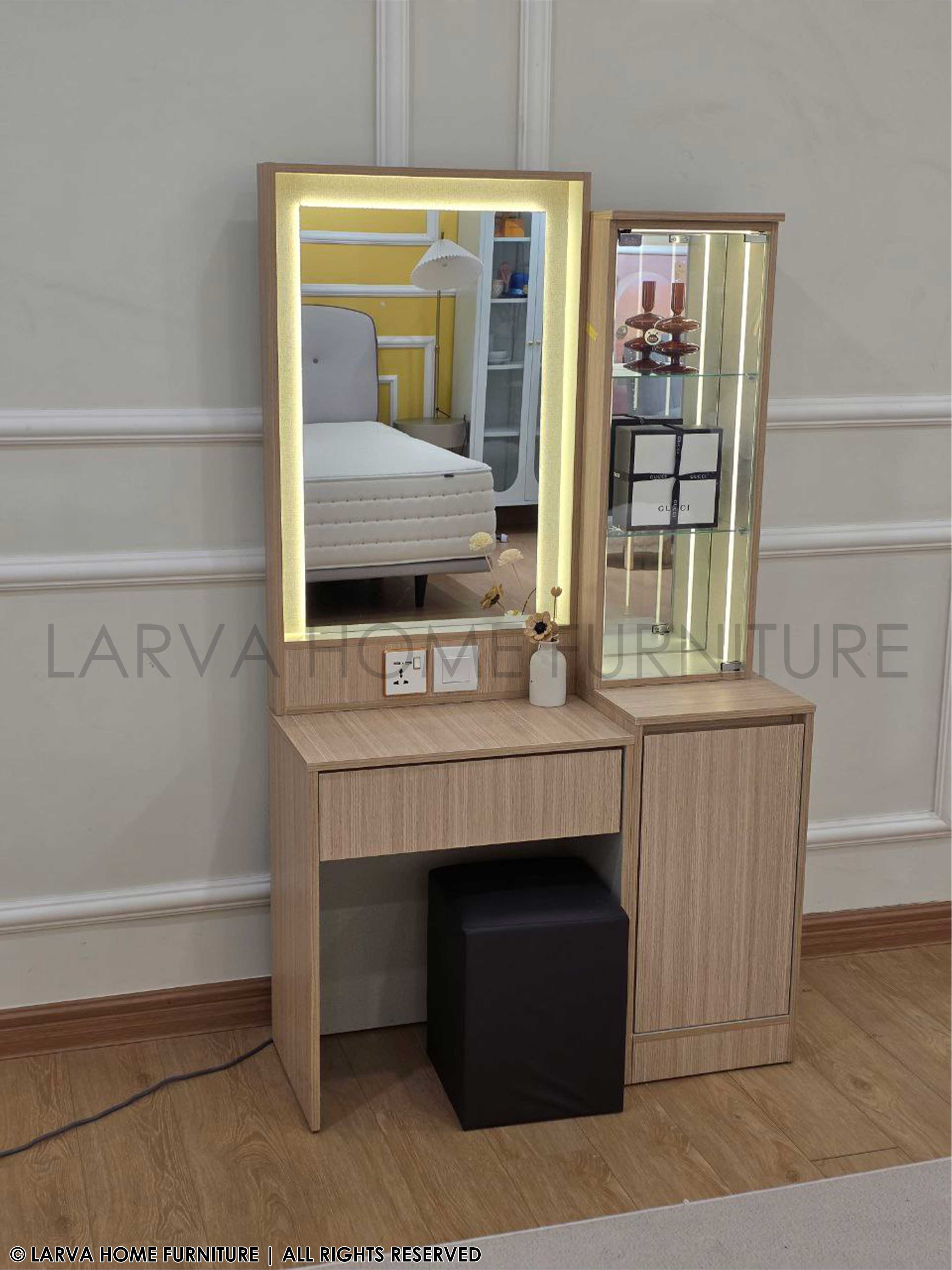 Designed for beauty and function, this Brook Dressing Table combines sleek lines with clever storage. The wide mirror brightens your space, while the compartments keep everything neatly organized. A must-have for a modern lifestyle!